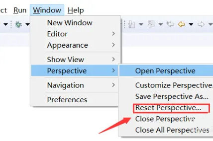 3、然后在二级菜单栏中,我们继续找到 reset perspective 这个按钮。