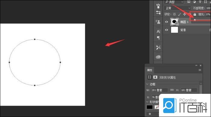选中椭圆图层后,将填充设置为0,让椭圆变成一个空心的形状。