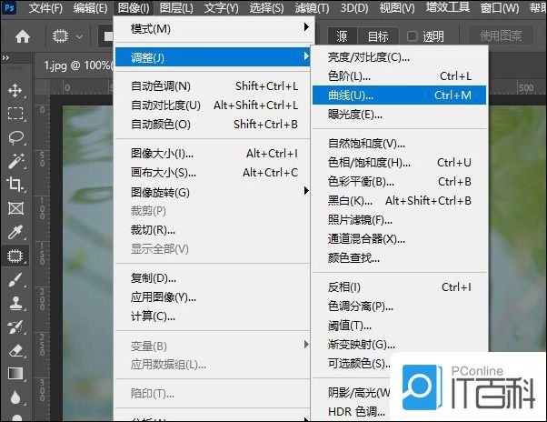 2.在图像菜单中,点击“调整”,然后选择“曲线”选项。