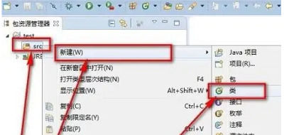5、紧接着,我们在 src文件夹 中依次 选择新建 ,再 选择类 。