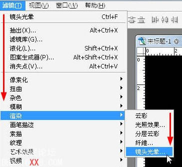 2、选择 “镜头” ,“ 渲染” , “镜头光晕” ,按照如图设置 参 数 。