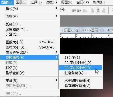 3、点击 “图像” ,选择 “旋转画布”, “90度逆时针”