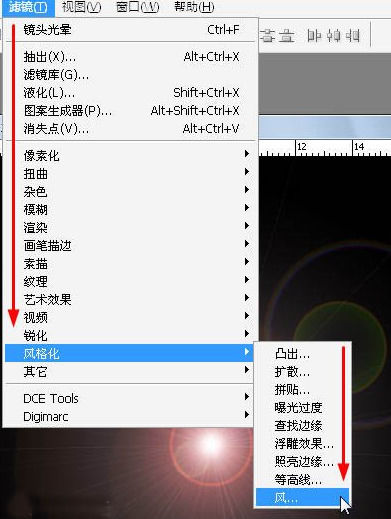 4、这里添加效果,点击 “滤镜”,“风格化”,“风”