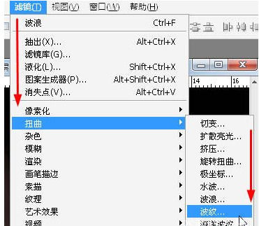 6、然后选择 “滤镜”,“扭曲”,“波纹” ,按照如下 参数设置。