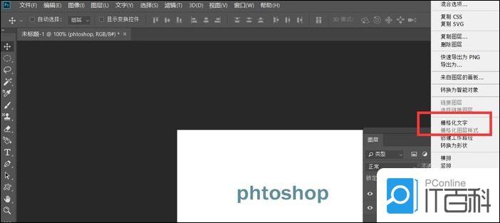 接下来,右击文字图层,选择【栅格化文字】,以将文字转换为可编辑的栅格图层。这一步是为了让接下来的扭曲效果能够被应用到文字上。