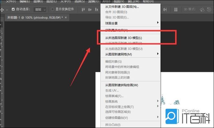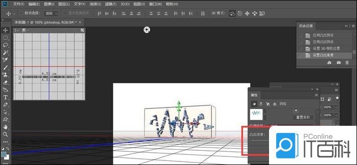 继续,在菜单栏中点击【3D】,然后选择【从所选图层新建3D凸起】。这将为文字图层应用一个立体的3D效果。