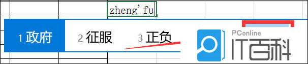 3、然后直接输入拼音“zhengfu”,就会出现±这个符号,然后选择就可以了。