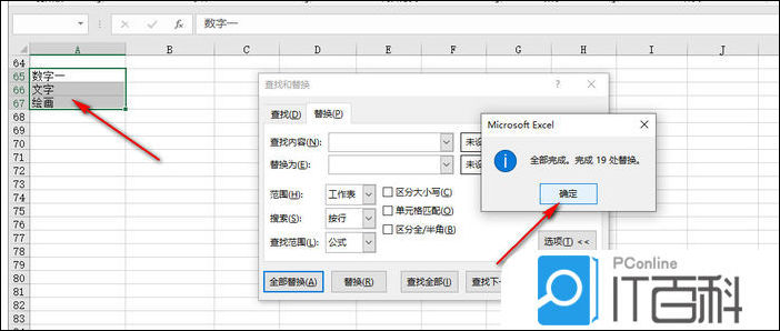 5、替换完成之后,我们可以看到完成替换的提示框,在表格中也能看到选中的单元格中,不可见字符已经被去掉了。