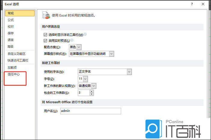 5、这时进入到excel选项窗口中,用户在左侧的选项卡中点击信任中心选项卡。