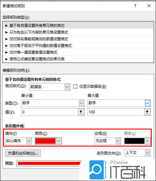 5、接着将【条形图外观】下方的【填充】【颜色】【边框】等根据自己的需要来进行设置,设置完成之后,点击确定按钮保存设置。