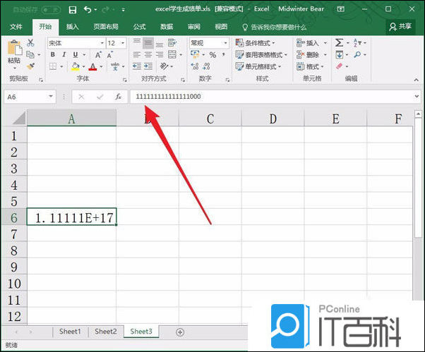 2、在常规单元格格式下,输入超过位数的数字会自动转换为科学计数法显示。