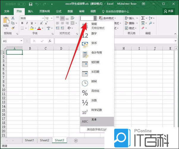 3、点击单元格快捷设置的下拉选项,选择文本格式。