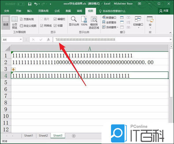 5、或者在输入数字前先输入英文状态下的‘符号,则可以强制将数字转换为文本方式显示。