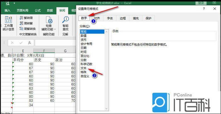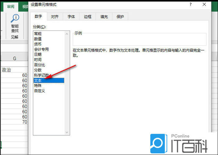 4、我们将数字的分类改为“文本”选项,可以看到该选项的作用是将数字作为文本处理,可以让显示的内容与输入的内容完全一致,设置好之后我们点击“确定”选项即可。