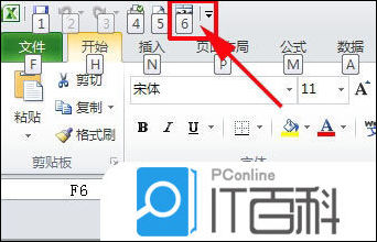 3、我们这时按一下Alt键,会发现“快速访问工具栏”中的“合并后居中”按钮上会出现一个数字,我这儿是6。