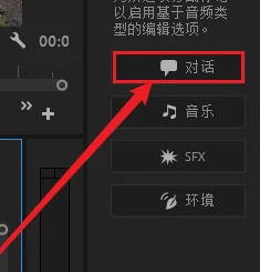 3、然后选择 音频轨道 ,点击“ 基本声音 ”中的“ 对话 ”。