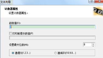 3、然后选择对应的功能点击下一步,弹出计数器属性对话框起始值就是我们打印的第一个流水号。