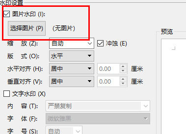 4、将“ 图片水印 ”勾选,然后点击“ 选择图片 ”。
