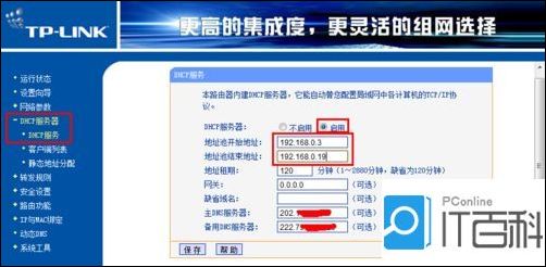 5、接下来点击“DHCP服务器”→“DHCP服务”,然后在右侧勾选“启用 DHCP”服务,同时设置地址池的开始地址和结束地址,由于是两台路由器,因此可以根据与当前路由器所连接的电脑的数量进行设置,比如小编所设置的参数,范围为“192.168.0.3”~“192.168.0.19”。最后点击“确定”按钮。