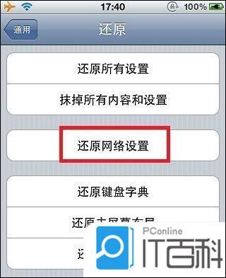 2. 苹果手机:依次点击手机的“设置”→“通用”→“还原”→“还原网络设置”;