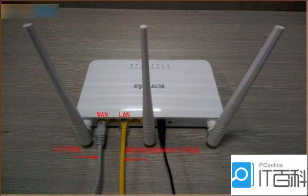 将猫分出来一根网线接路由器的WAN口(蓝色),再找一根网线,一头接电脑,一头接路由器1/2/3任意接口(黄色),接线方式:
