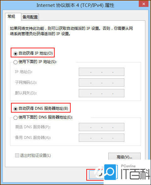4.选择“自动获得IP地址”“自动获得DNS服务器地址”,确定即可: