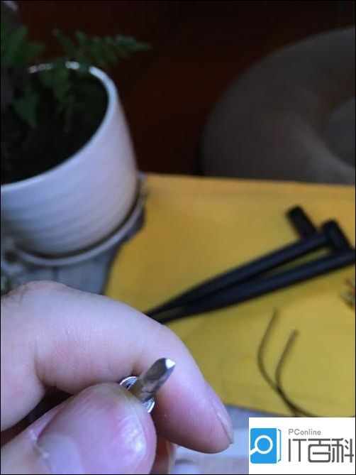 1、准备要用到的工具及原料,拿起螺丝刀开始拆机,注意把无线路由的天线放倒好拆,此路由为三角型螺丝孔,我是自己磨了一把螺丝刀。