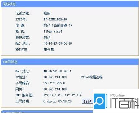 b 检查管理界面的"运行状态--WAN口状态"显示的上网方式是否正确,若不正确请参考第1部分步骤三重新设置;