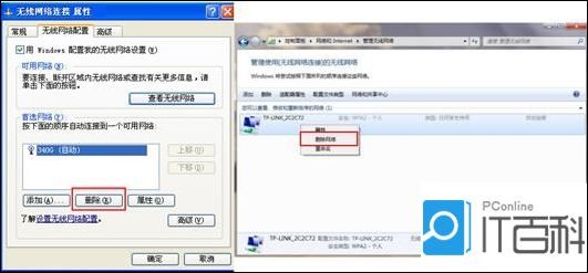 方法如下:Windows XP系统点击"无线连接状态属性--无线网络配置--首选网络",( Windows 7和Vista系统进入方法为"控制面板--网络和Internet--管理无线网络")对相应无线配置文件进行删除,然后重新扫描信号并连接。