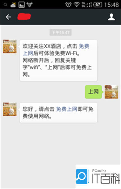 如果下次需要接入该无线网络上网,请在该微信公众号中输入包含“上网”的相关词语(如“上网”“WiFi”等),收到免费上网消息后,点击后即可上网。具体相关词可以在微信后台设置。