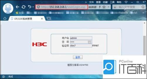 2、打开浏览器,输入H3C路由器后台Web管理地址,在弹出的登录界面中,输入“ 用户名 ”和“密码”以完成登录操作。默认“ 用户名” 和“ 密码”均 为“ admin”。