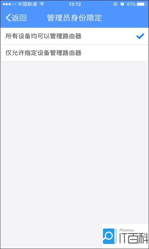 3、点击“ 管理员身份限定”, 我们可以把自己的特定的设备设定成管理员身份,点击 “仅指定设备管理路由器 ”,选择添加的设备。