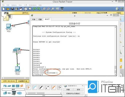 为各台路由器命名上相应的名字,命名路由器a的名字为a,路由器b的名字为b,路由器c的名字为c,路由器ISP的名字为isp,