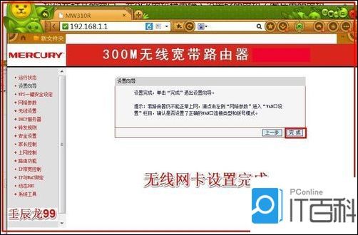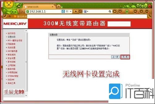 无线网卡设置完成,点击:完成,退出设置窗口。
