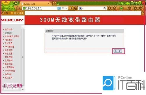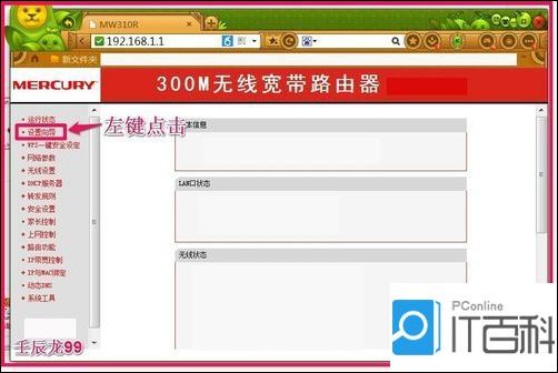 在打开的无线路由器设置窗口,我们点击窗口左侧的“设置向导”;