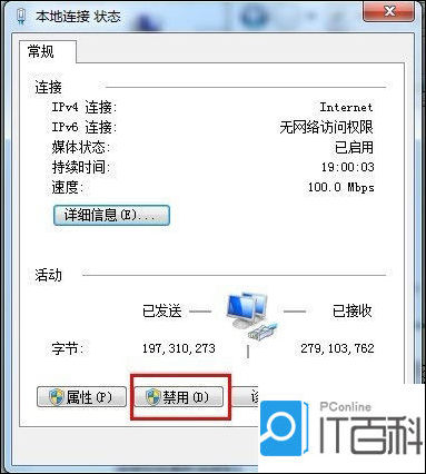 这样就能打开本地连接状态,看到“禁用”按钮没有?点击,过一会后,选择“启用”,是不是简单就搞定了?