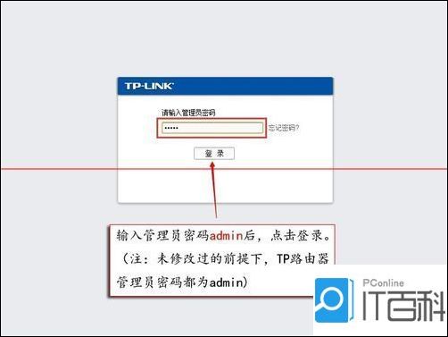 3、输入管理员密码 admin 后,点击登录。(注:未修改过的前提下,TP路由器管理员密码都为admin)