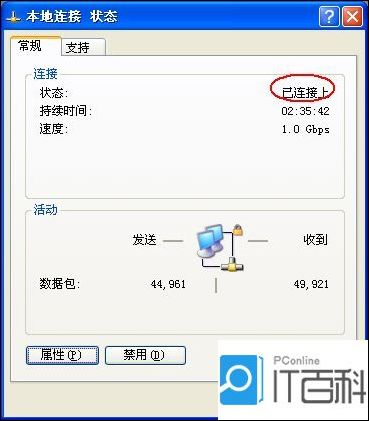 6、稍等一会我们再查看一下电脑连接状态,如果显示“已连接上”,则可进行后续的操作: