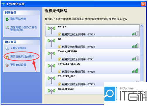 点击:更改首选网络的顺序;