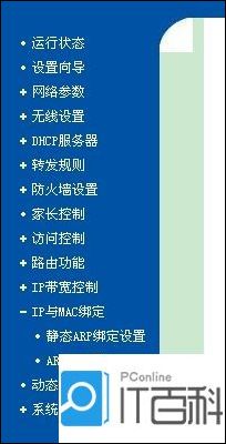 2、首先我们可以先看看自己的路由器上面有那些IP地址,点击左侧导航里面的IP和MAC绑定-ARP映射表!!