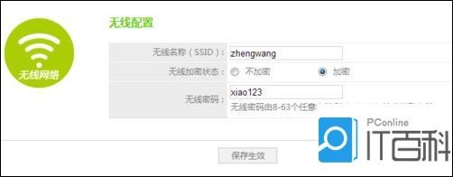 6、下面的无线设置就是无线网的账号密码,这里自己想一个填入,不要太简单容易被别人盗用,也不要太复杂,自己人用麻烦,设置好点击下面的保存设置就可以了。