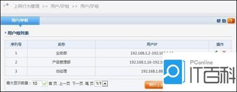同样通过“增加”按钮,增加了业务部、产品管理部、总经理三个用户组及其向对应的IP段。
