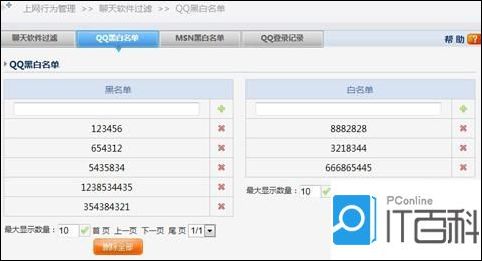 分别添加QQ黑名单与白名单。MSN白黑名单的设置方法与QQ黑白名单设置方法一致。