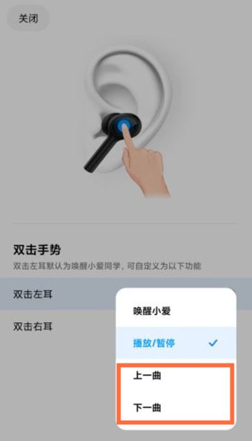 3、选择【上一曲】或【下一曲】,双击耳机即可切歌。
