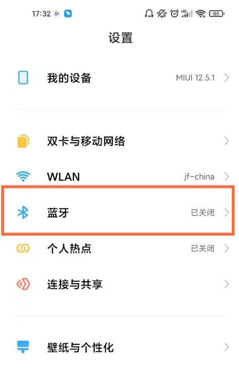 2、打开小米手机设置,点击【蓝牙】,将【开启蓝牙】的开关开启。