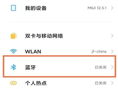 2、打开小米手机设置,点击【蓝牙】,将【开启蓝牙】的开关开启。