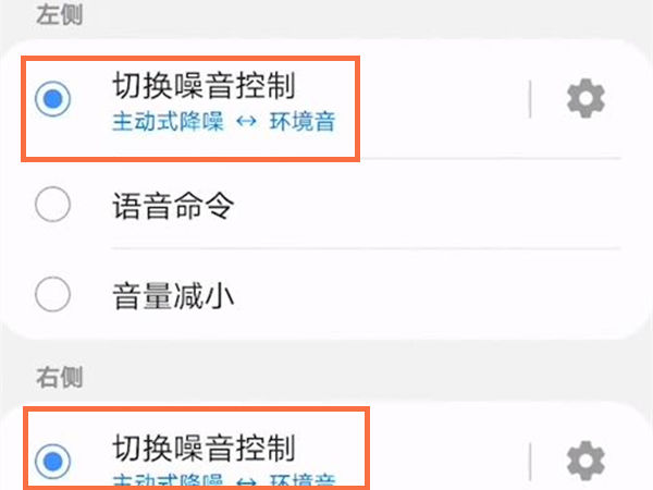 4、进入长按设置中,勾选左/右侧切换降噪控制,再耳机触摸区进行长按即可切换到降噪模式。