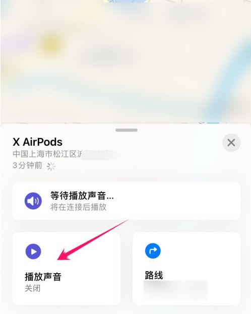5、到耳机丢失附近后,点击“播放声音”,这个时候AirPods会发出滴滴的声音,根据声音找到耳机。