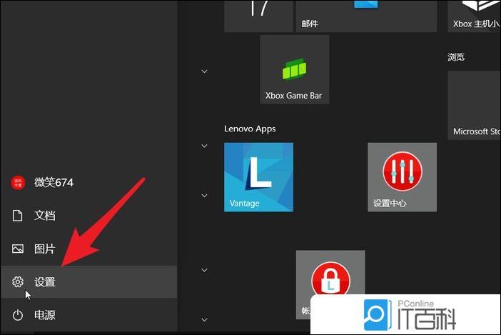 按 Win 键,或点击左下角的开始菜单,在打开的菜单项中,选择电源按钮上方的设置
