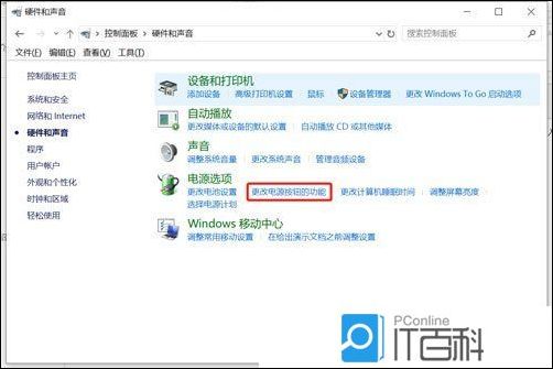 3、硬件和声音窗口,点击电源选项下的更改电源按钮的功能;